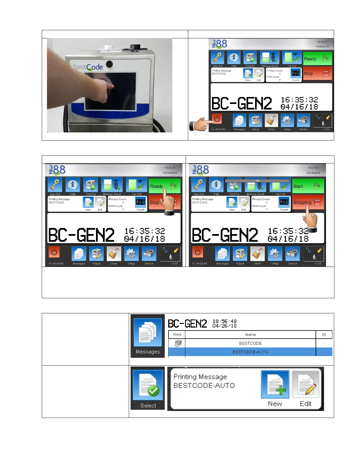 BestCode Next 8 Series - Printer Operation; Power On and Off; Start and Stop Jet; Selecting Print Messages