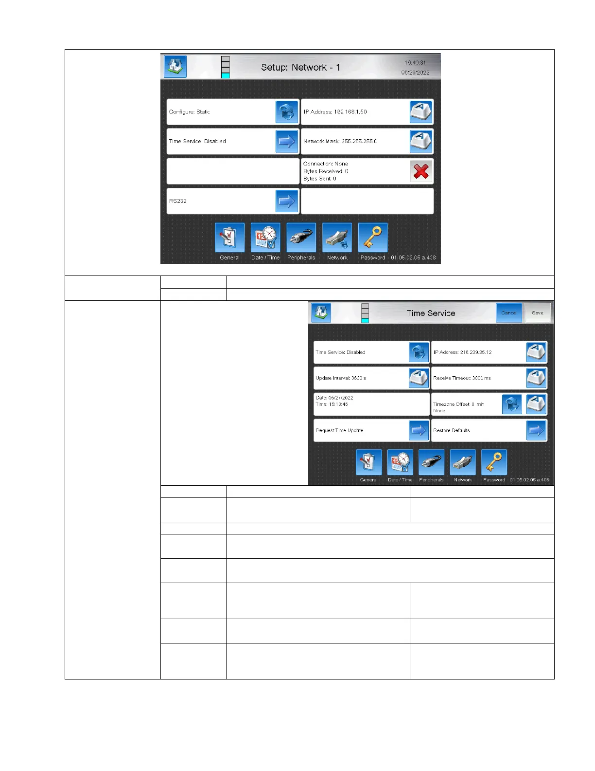 The time service screen is used to