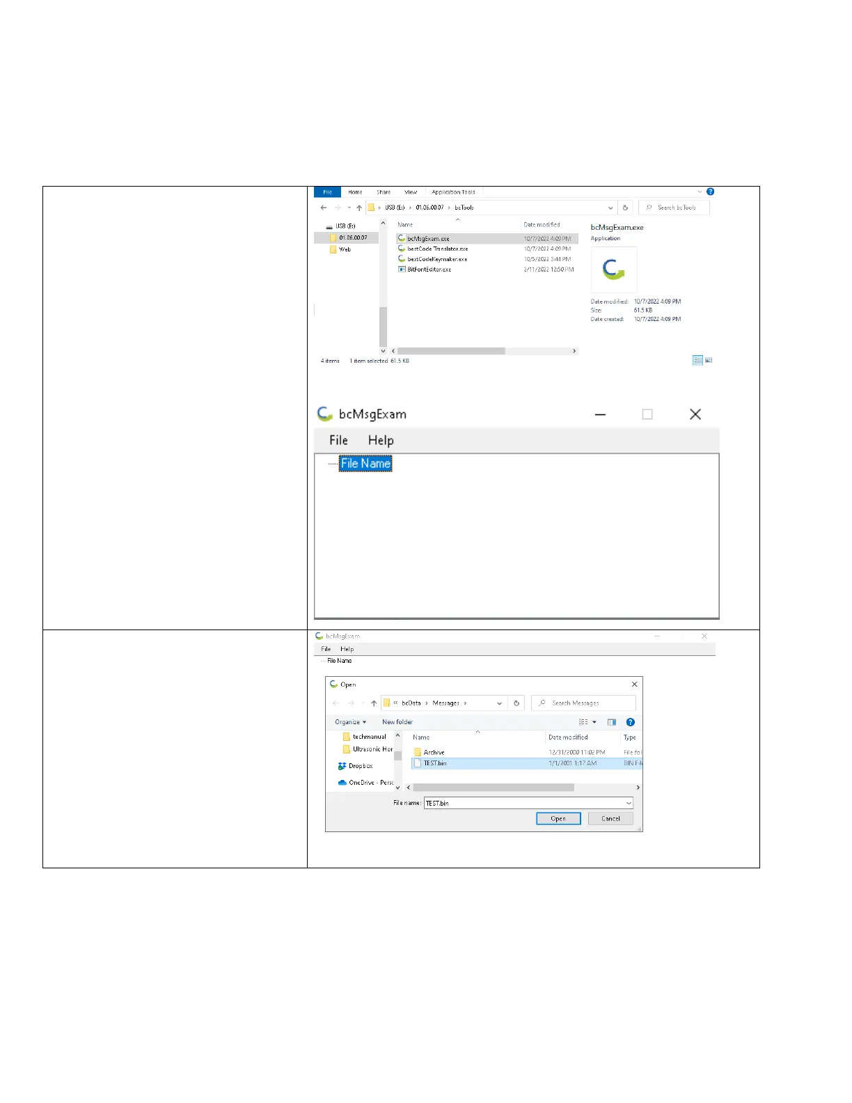1. Run the bcMsgExam.exe file