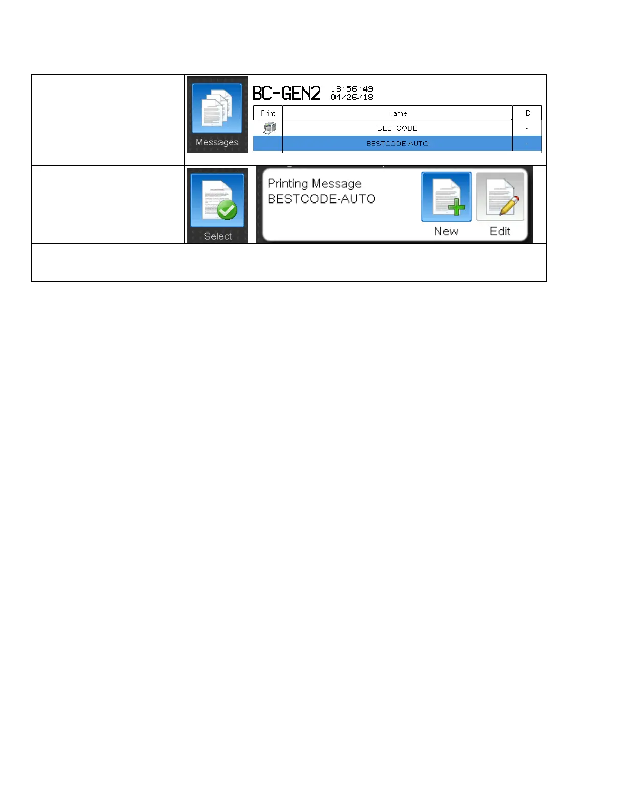 BestCode NExT 86 - Selecting a Message for Print