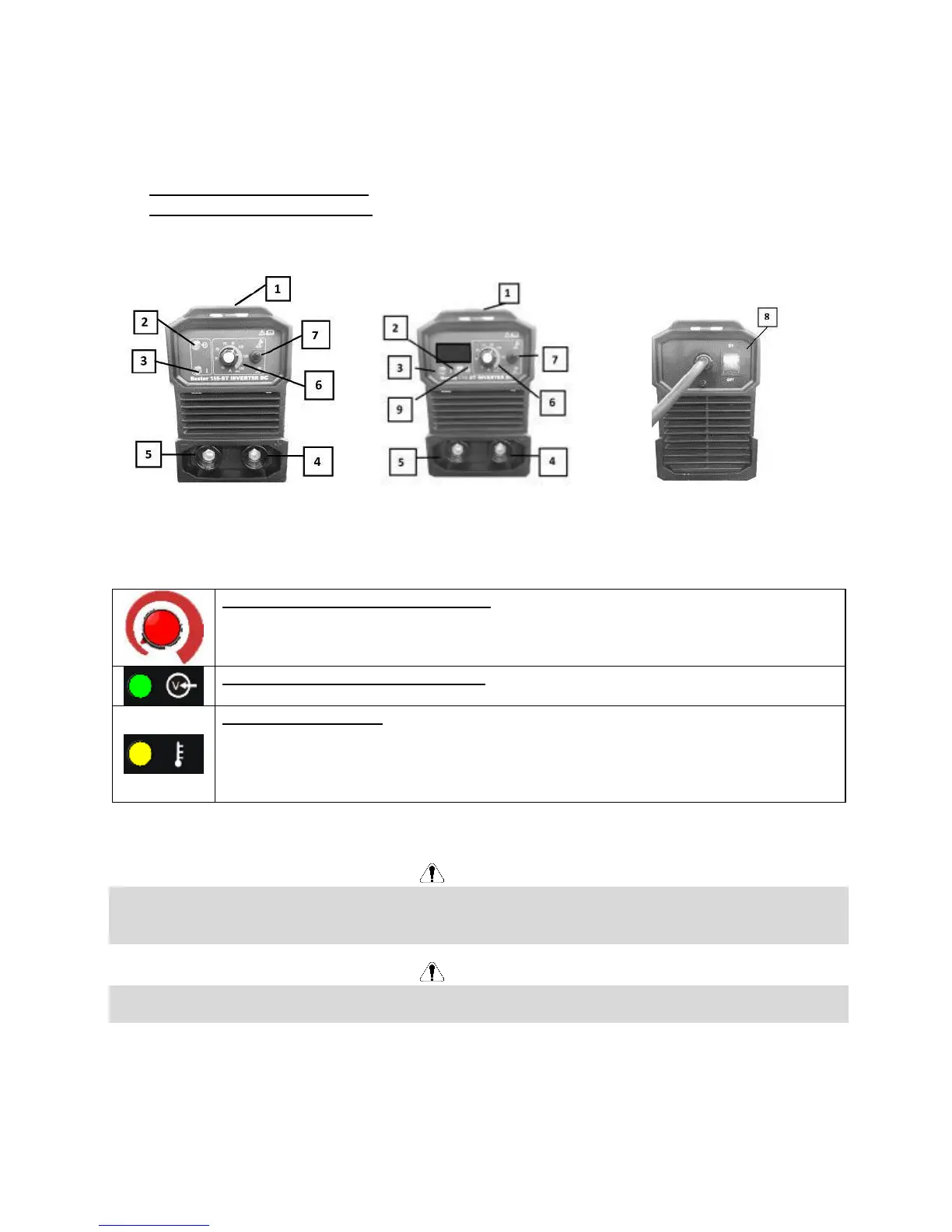 5 – Negative Ausgangsbuchse, 6 – Schweißstromregler, 7 – Umschalter für WIG-Schweißen mit