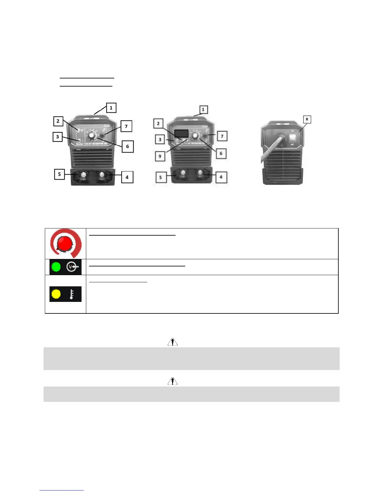 7 – Bryter for TIG Lift/elektrode, 8 –Av/på-bryter