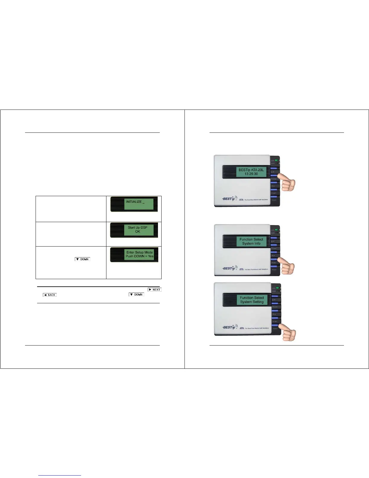 2. Then, you can press “NEXT” or “BACK” button to scroll the menu.