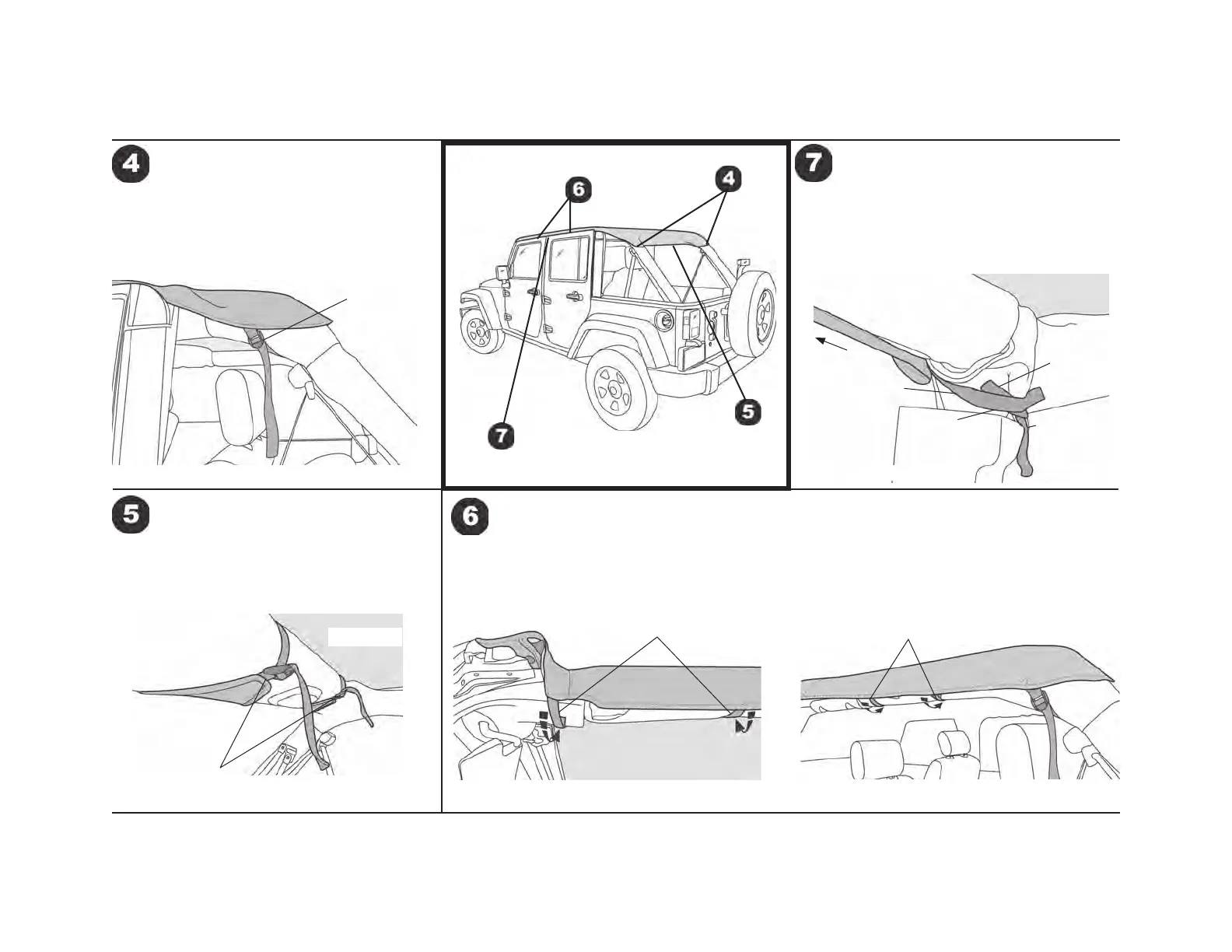 Locate the hook and loop strips sewn to the front fl aps and the three (3) pairs of hook and loop strips sewn