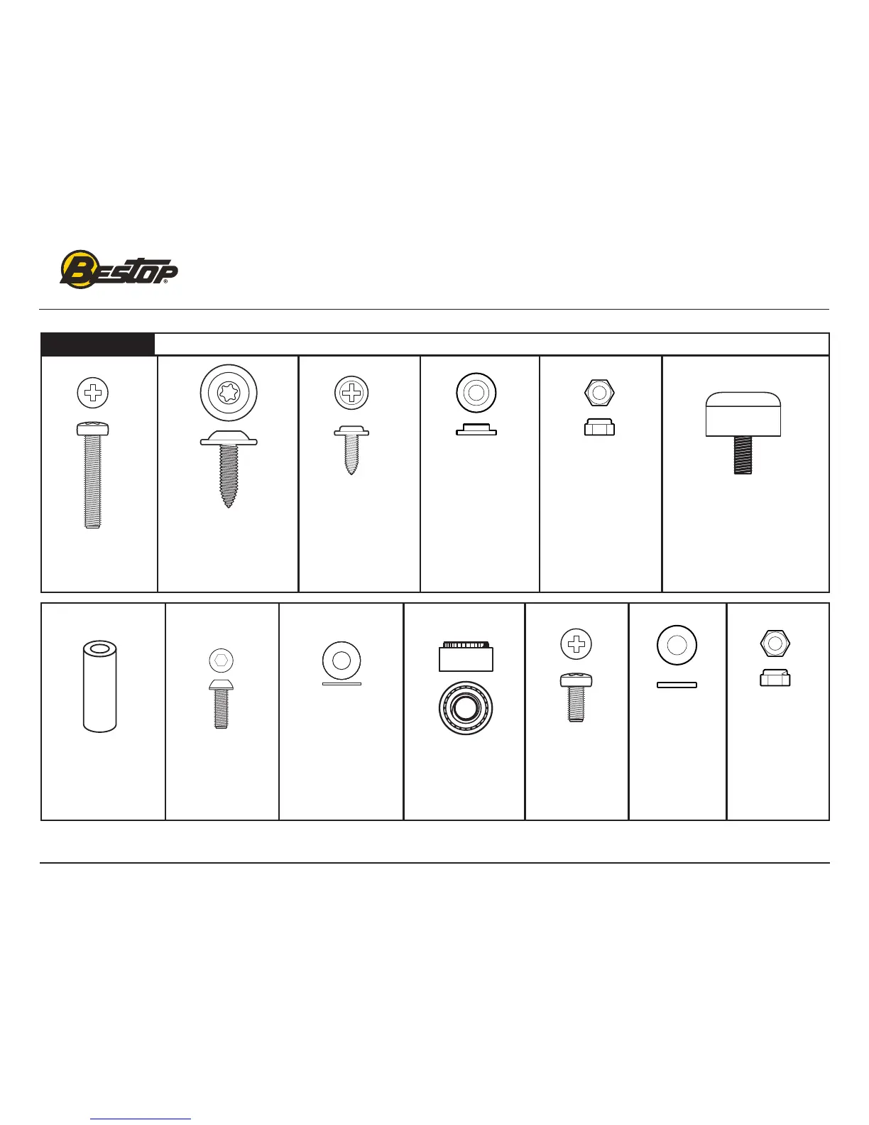 Bestop TREKTOP NX GLIDE - Parts List: Hardware and Fasteners; Fastener Components; Small Hardware Parts
