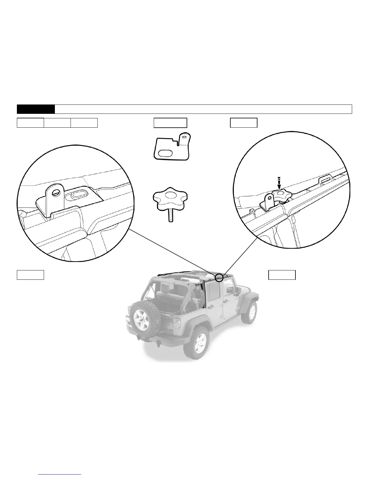 Bestop Trektop NX - Section 5: Install Sunrider Bracket; Step 1: Place Sunrider Bracket; Step 2: Secure with Knob