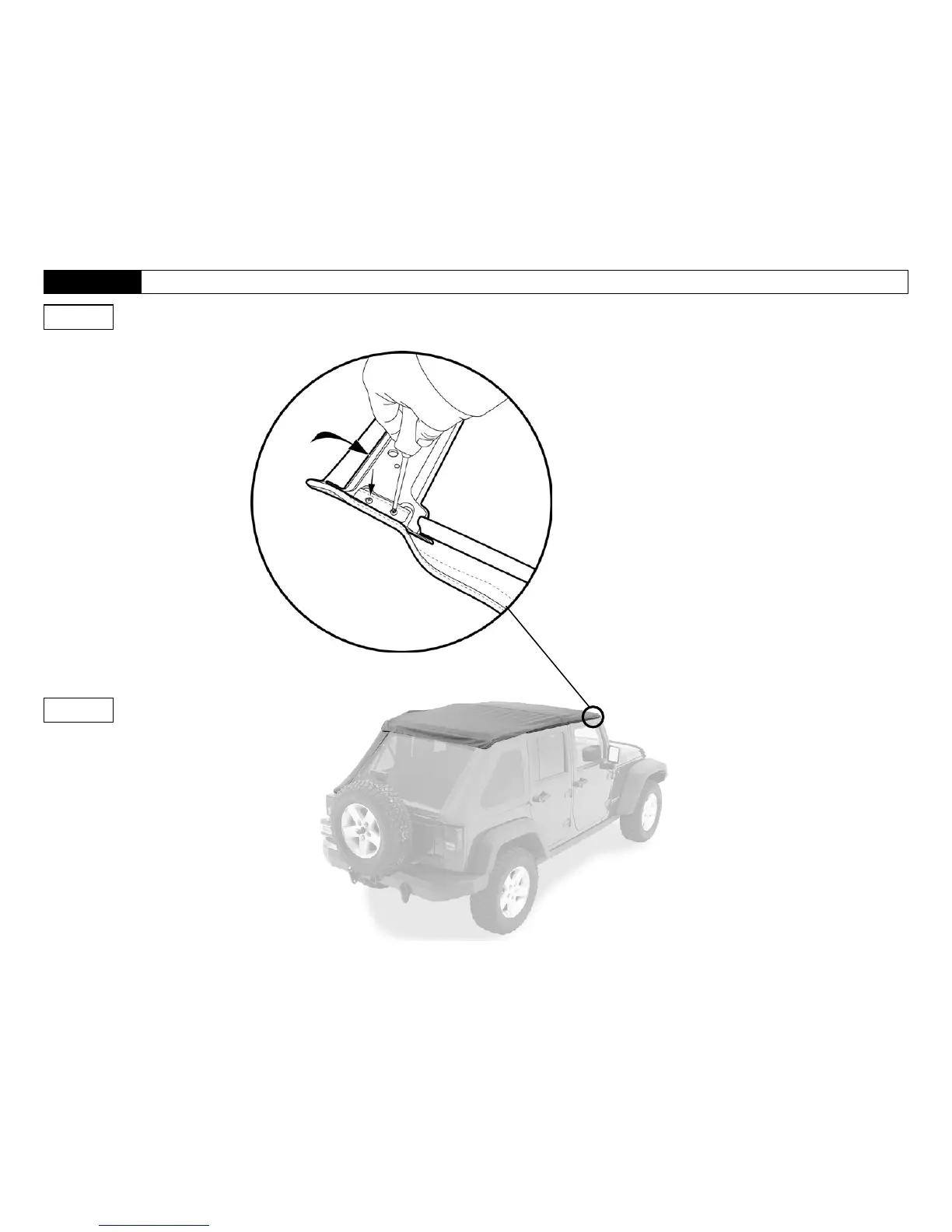 Bestop Trektop NX - Section 9: Attach Side Bows to Header;Fabric Assembly (cont.); Step 5: Reinstall Header Screws