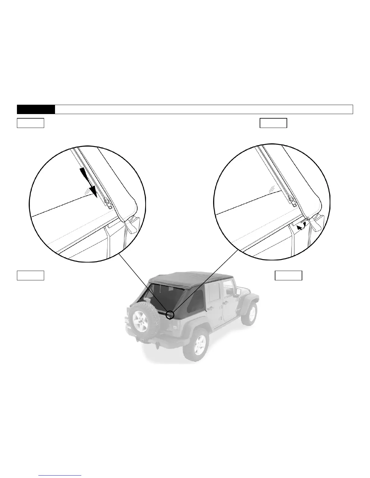 Bestop Trektop NX - Section 20: Secure Rear Window; Step 1: Close Rear Window Zippers; Step 2: Wrap and Slip Side Windows