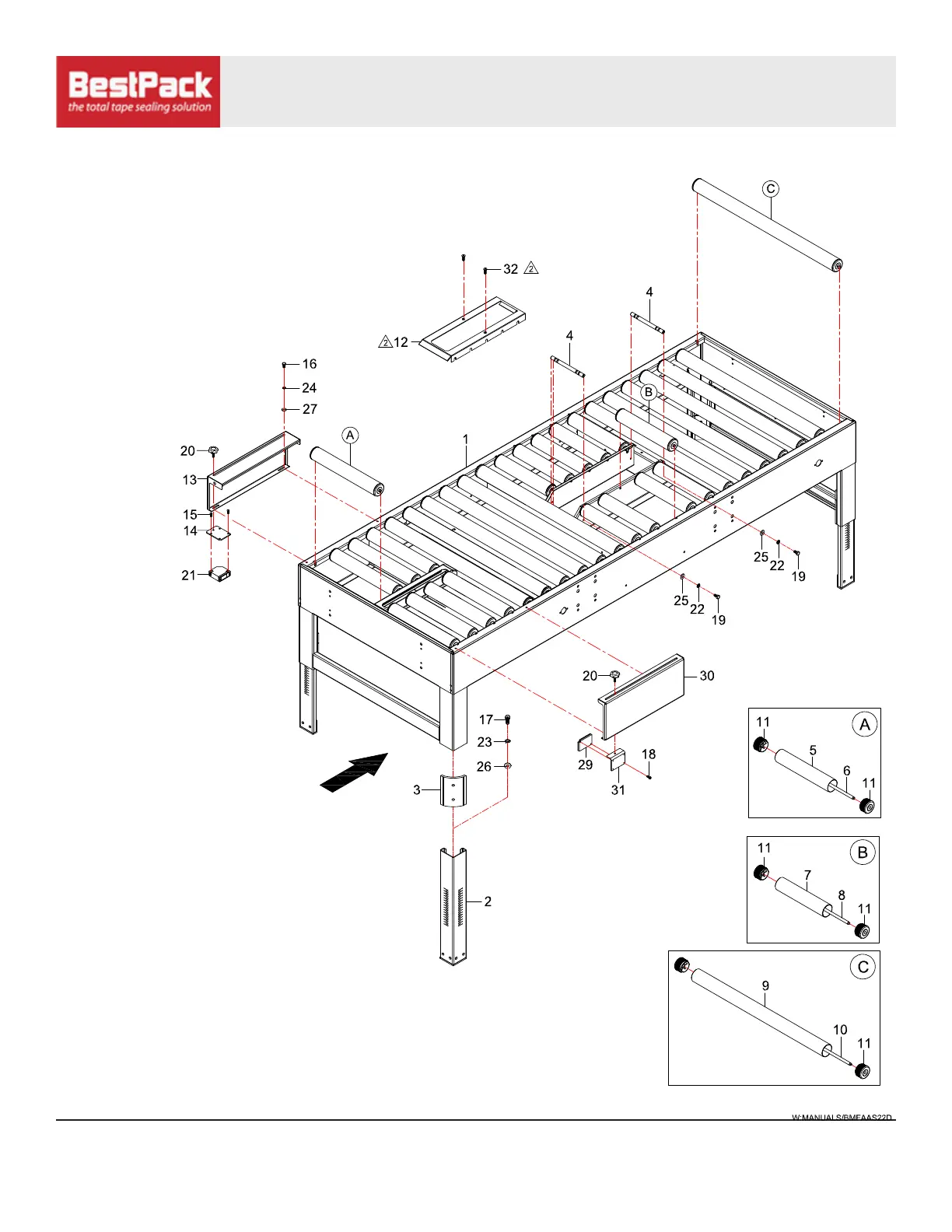 BestPack AS22-2 - Roller Bed Assembly; Roller Bed Diagram