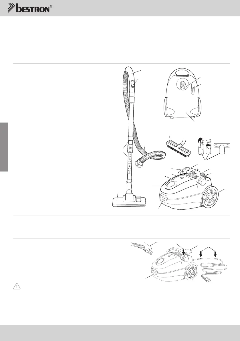 poignée du tuyau souple (4). Pour soulever l’appareil, saisissez le par la poignée de l’aspirateur (10),