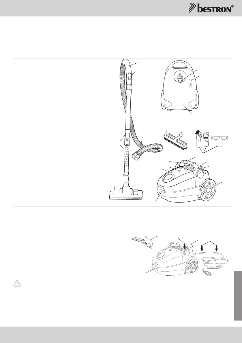 mango de la manguera (4). Para levantarla, tómela por el asidero de la aspiradora (10). Véase la