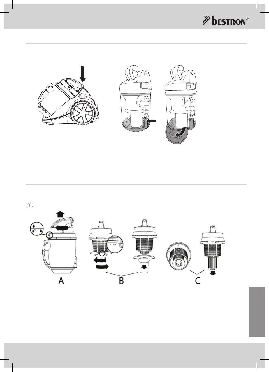 1. Saque los desechos del depósito de polvo (véase “Sacar los desechos del depósito de polvo”).
