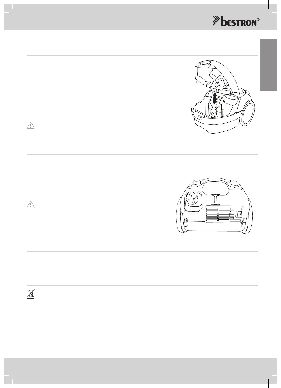 apparaat. Plaats een stofzak. Druk het deksel dicht totdat het vastklikt.
