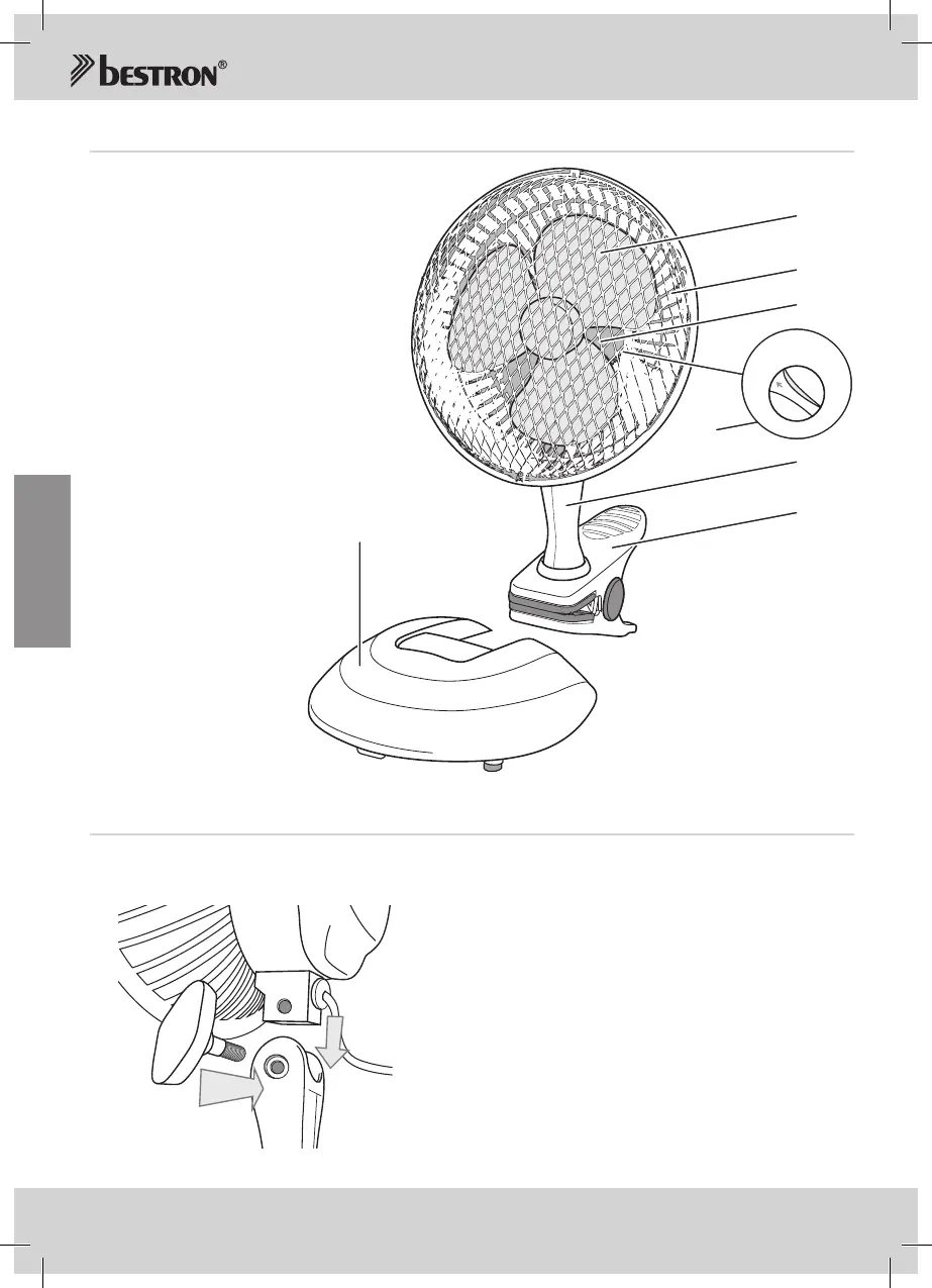 2. Placezlacorbeilleduventilateur(2)avecblocmoteur(3)surlepiedtélescopique(5).Fixeràl’aidedes