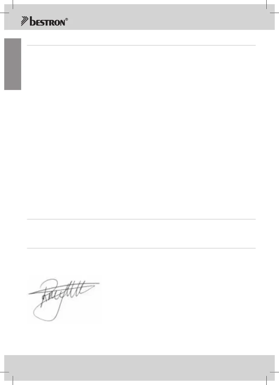 10.Om aanspraak te maken op garantie kunt u zich wenden tot uw winkelier. Bestron biedt ook de