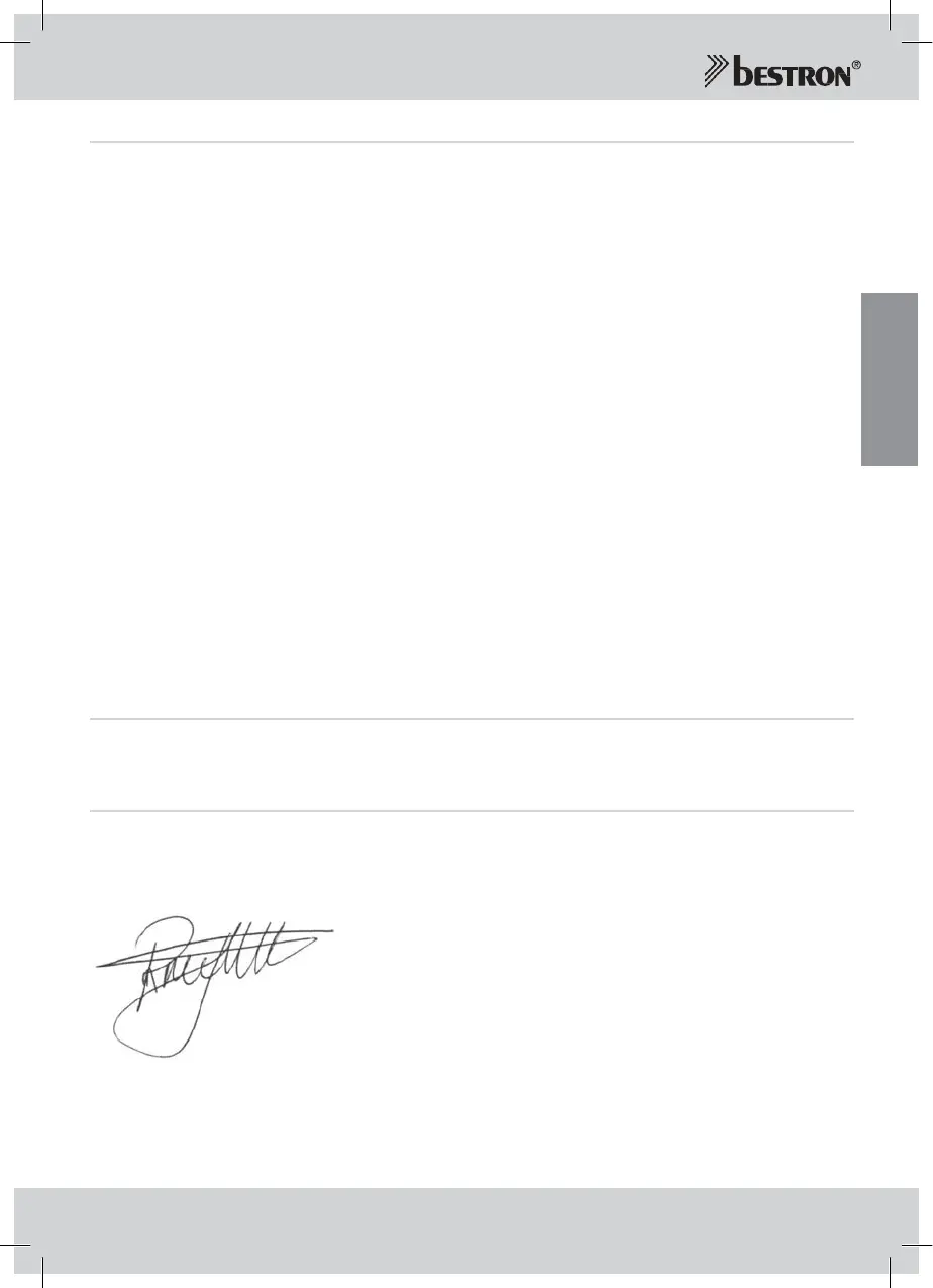 Um Garantieleistungen in Anspruch zu nehmen, wenden Sie sicht direkt an Ihren Händler. Bestron bietet