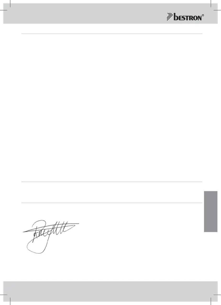 Per reclamare la garanzia, potete rivolgervi al vostro negoziante. Bestron offre anche la possibilità