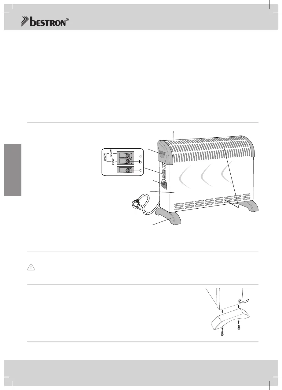 Avant d’utiliser le radiateur à convection, vous devez obligatoirement monter les