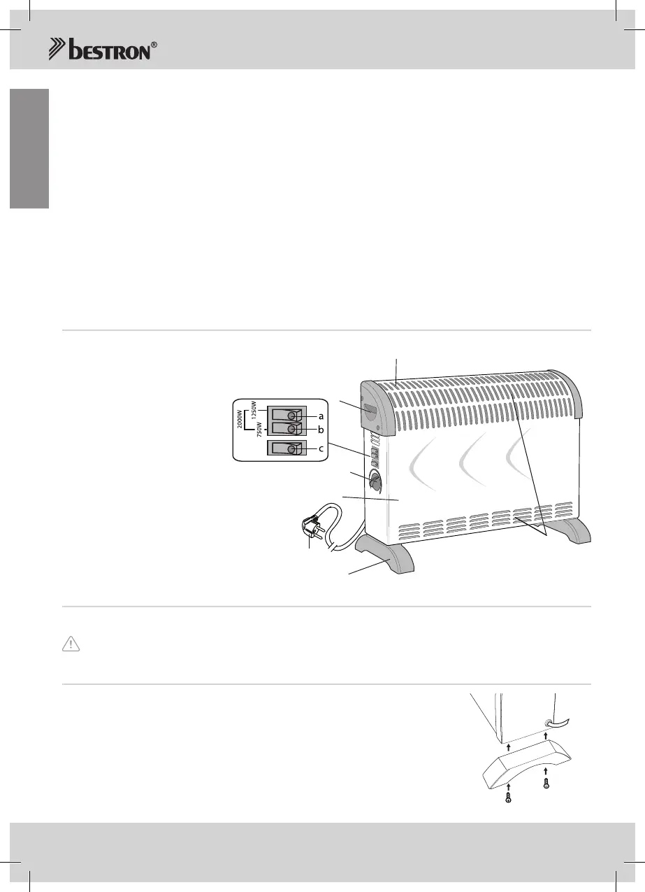 Voordat u de convectorkachel mag gebruiken, moeten de twee steunvoetjes
