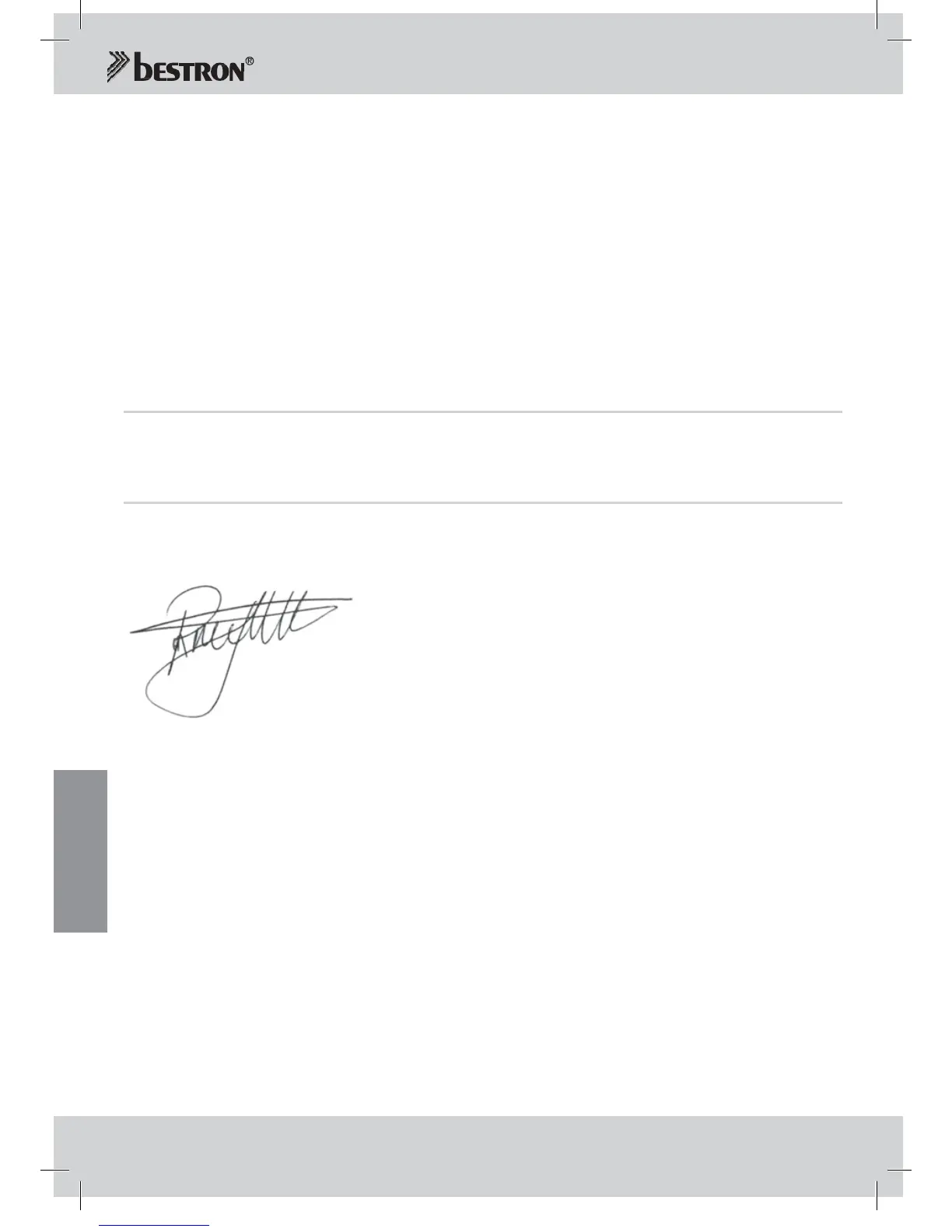Per reclamare la garanzia, potete rivolgervi al vostro negoziante. Bestron offre anche la possibilità
