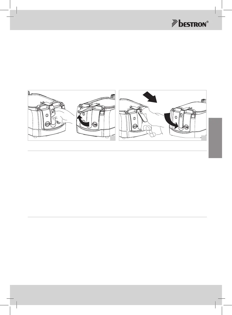 5. Trek de vergrendelknop in de handgreep naar u toe en beweeg de handgreep omlaag. De frituurmand