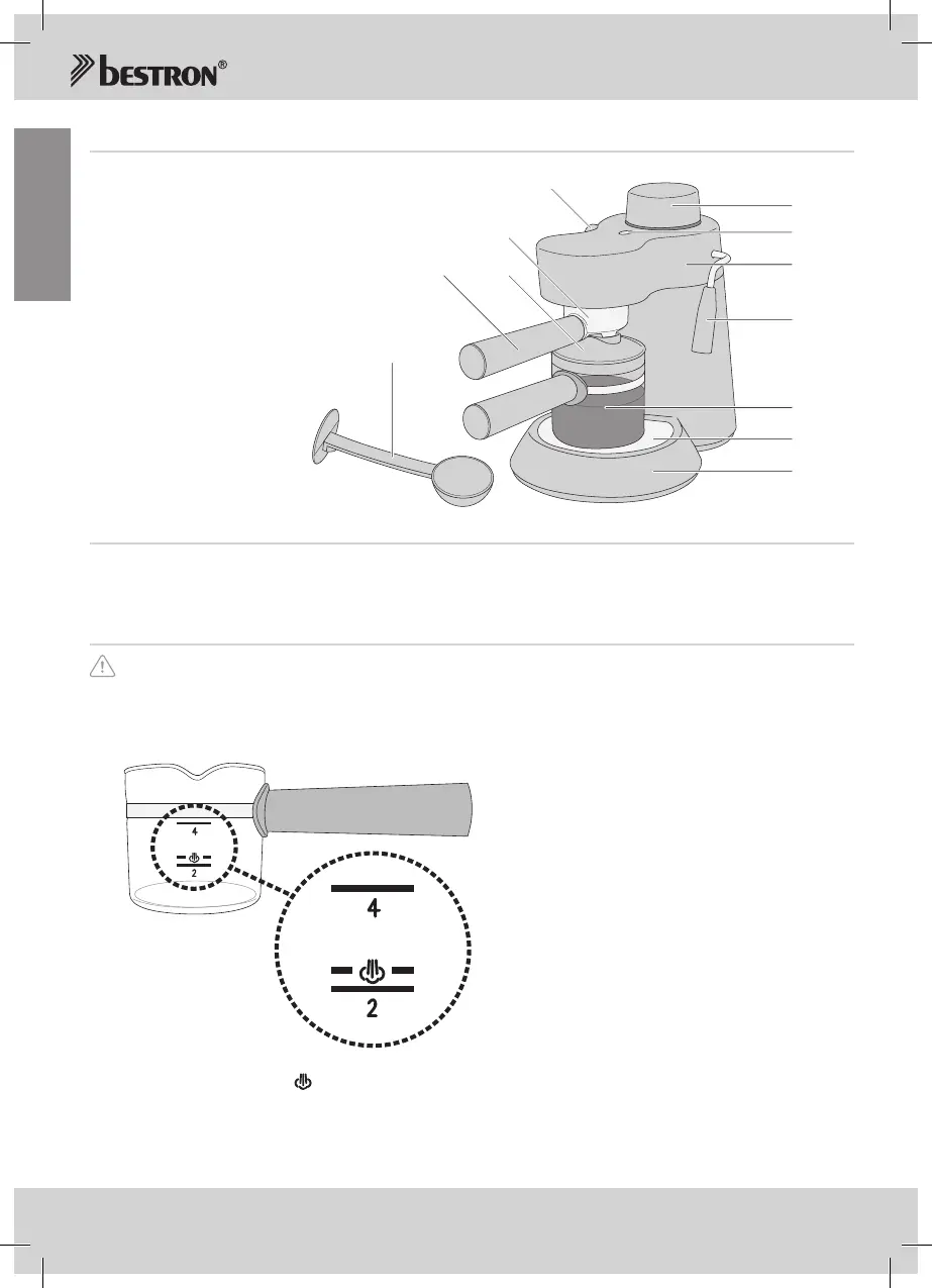 Voordebereidingvanespressowordterinhetapparaatdrukopgebouwd.Verwijderdeafsluitdop(2)