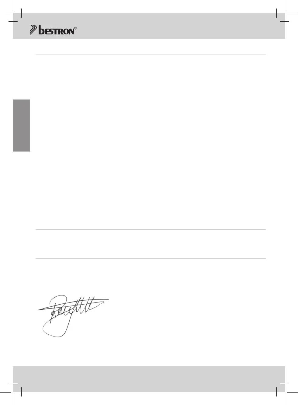 10. Um Garantieleistungen in Anspruch zu nehmen, wenden Sie sicht direkt an Ihren Händler. Bestron bietet