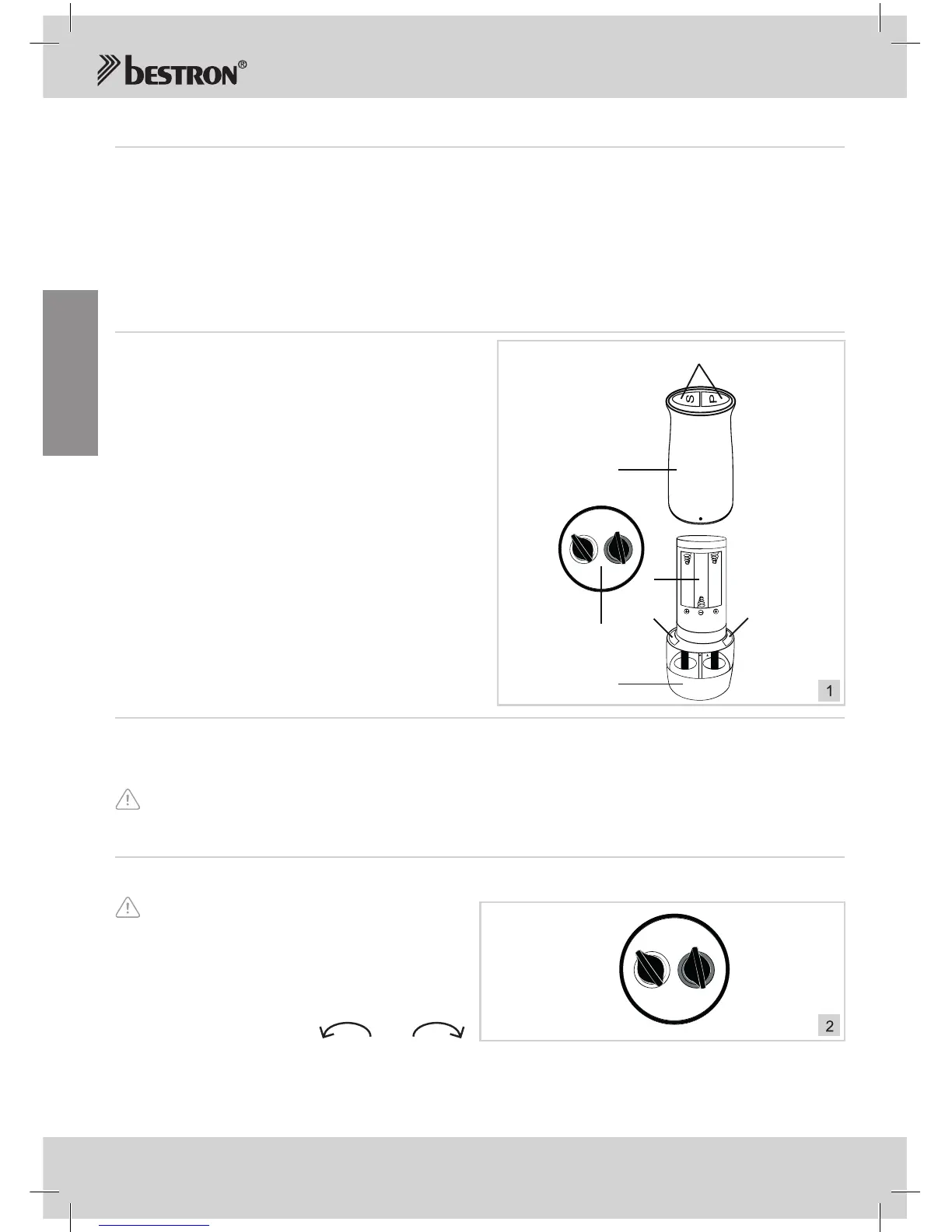 BeimZusammensetzenaufMarkierungenaufdemGehäuse(2)undPfeffer/Salzbehälterachten!