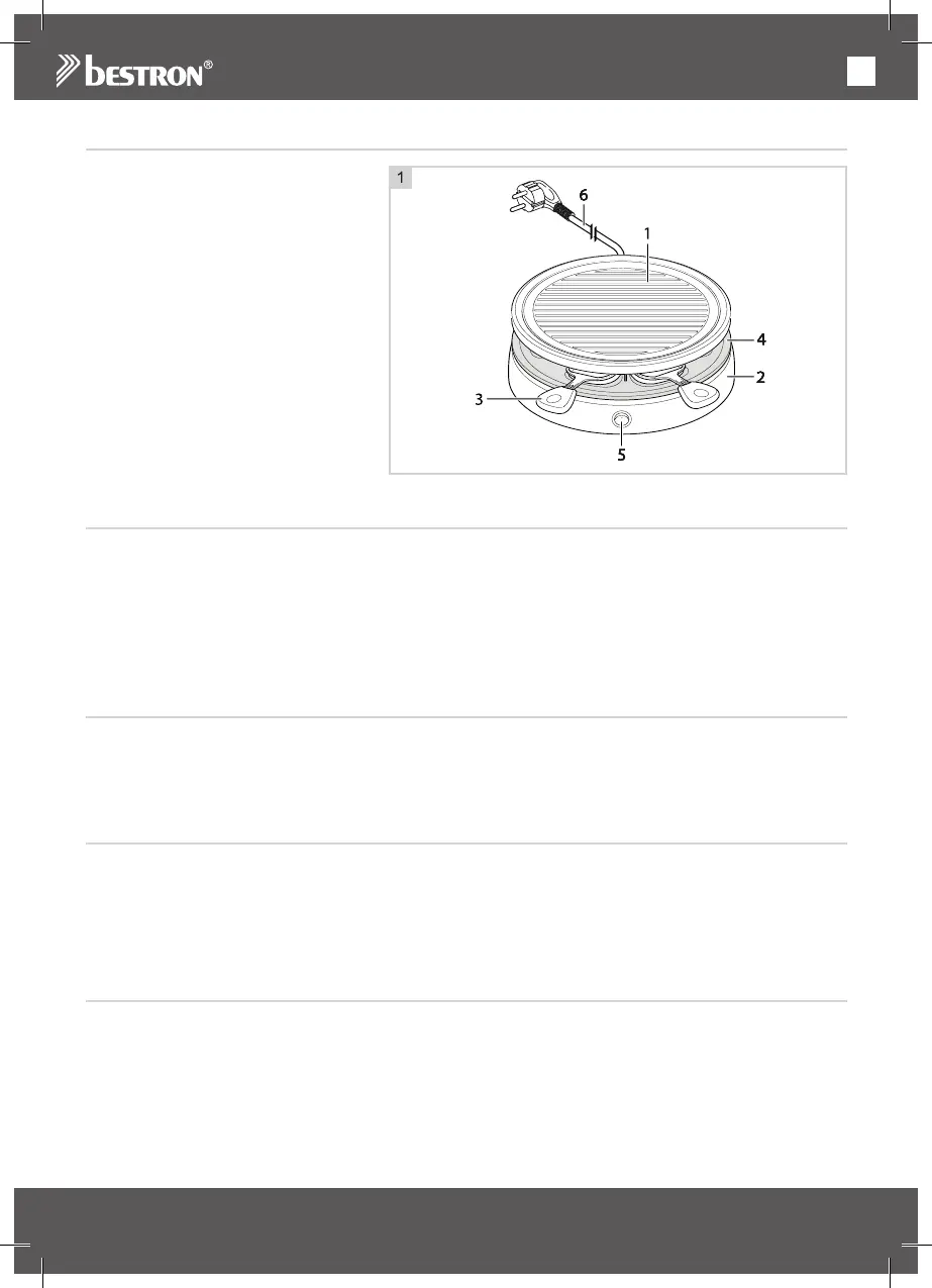 • Laat tijdens het racletten en grillen de bakplaat op het onderstel zitten.