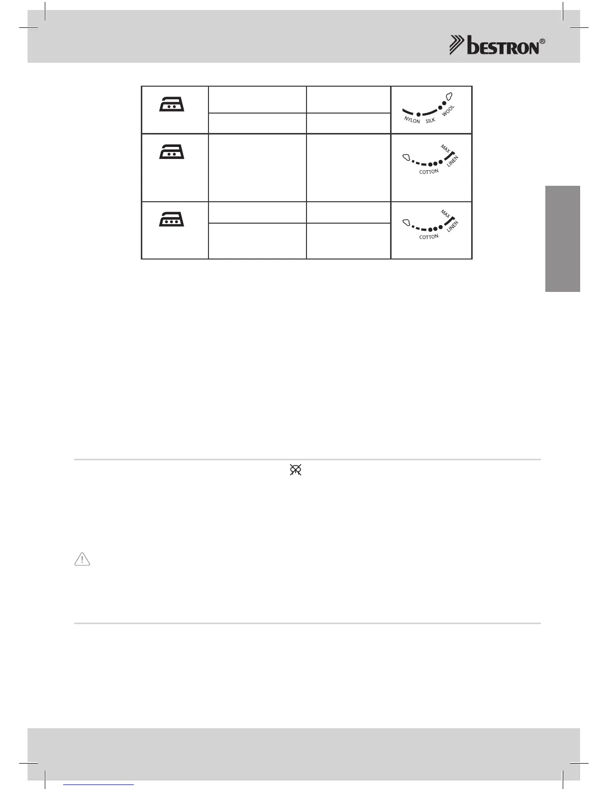 DievorgeschriebenenTemperatureinstellungengeltennurfürdiegenanntenMaterialien.BügelnSie
