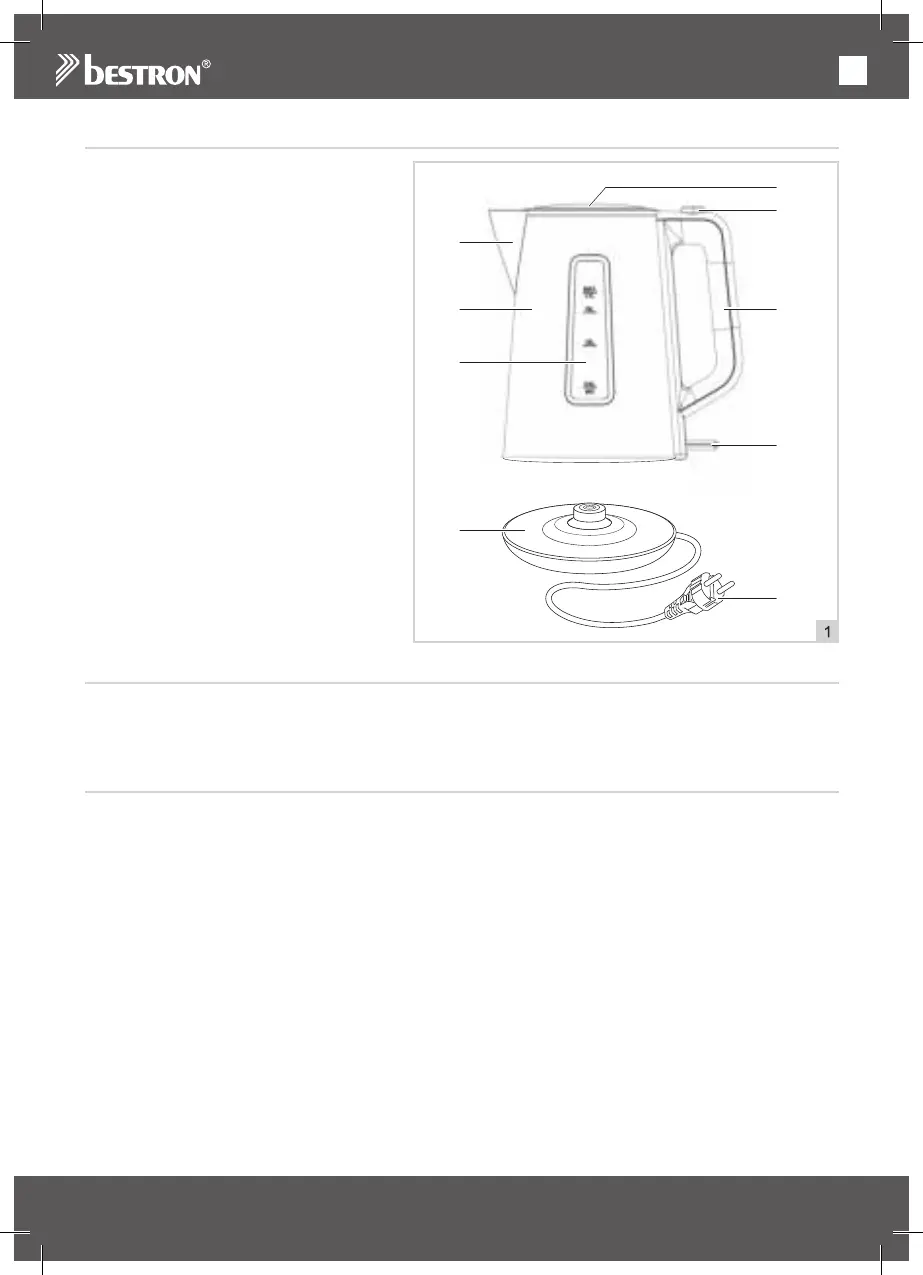 4. Disponga il rossore della caldaia sulla base (8). Inserire la spina (9) nella presa. Premere l’interruttore