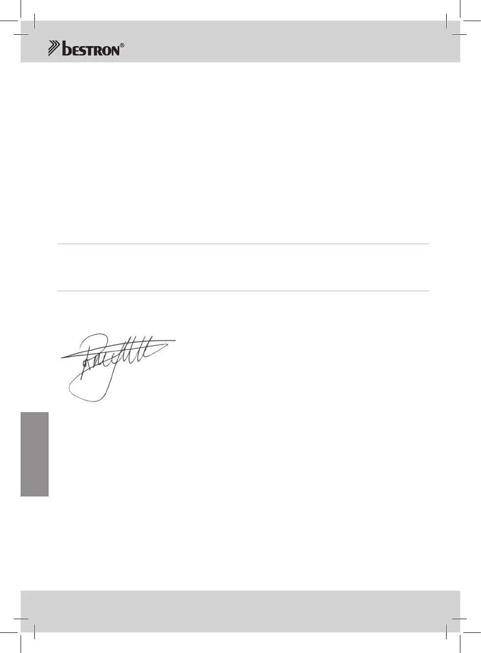 10.Per reclamare la garanzia, potete rivolgervi al vostro negoziante. Bestron offre anche la possibilità