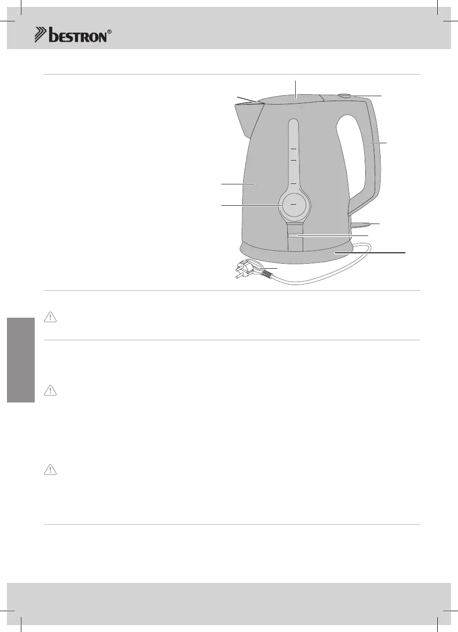 without (sufficient) water. Allow the jug kettle to cool down for at least 10 minutes before using it again.