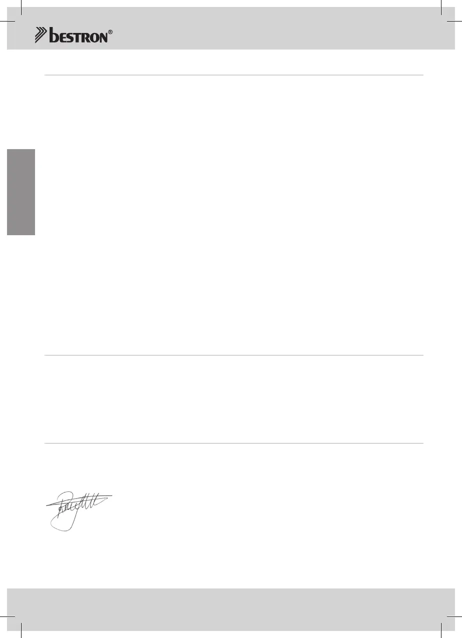 10. Um Garantieleistungen in Anspruch zu nehmen, wenden Sie sicht direkt an Ihren Händler. Bestron