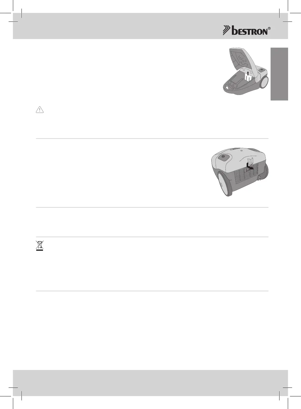 • Let erop dat de stofzak niet klem komt te zitten tussen het deksel. Hierdoor kunt u het apparaat