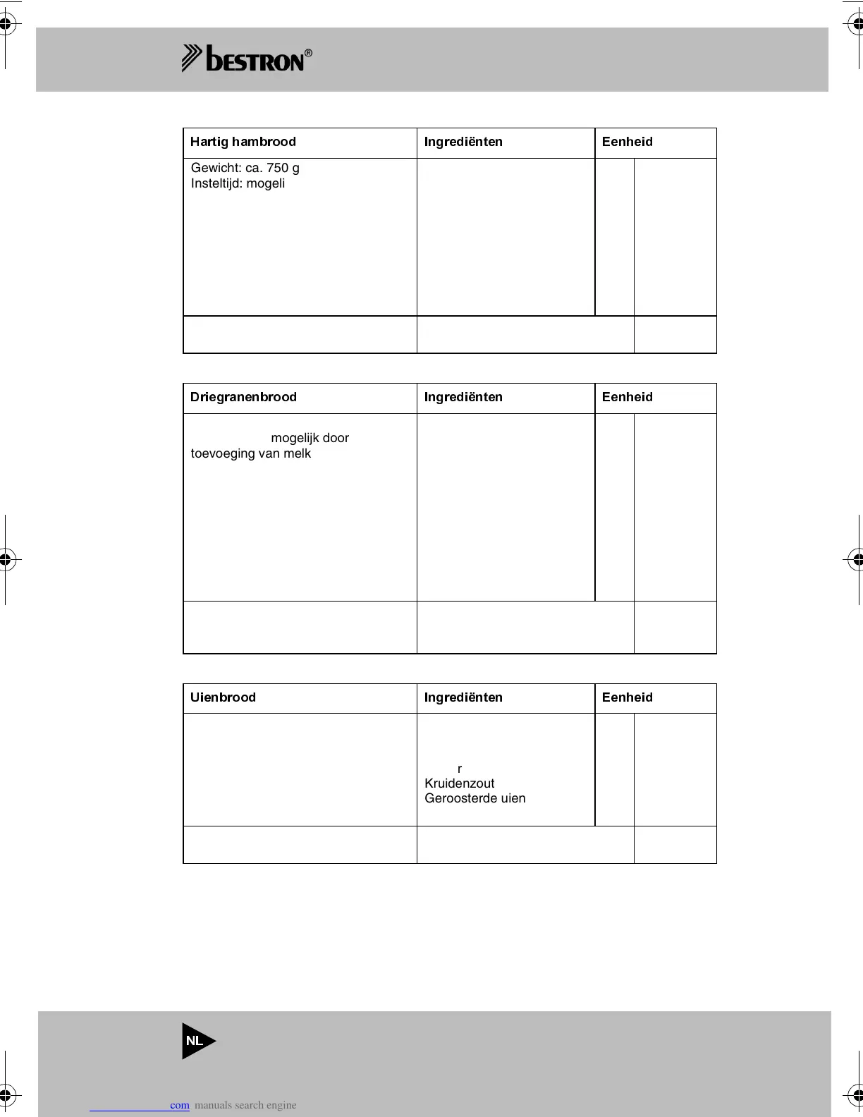 'ULHJUDQHQEURRG ,QJUHGLsQWHQ (HQKHLG