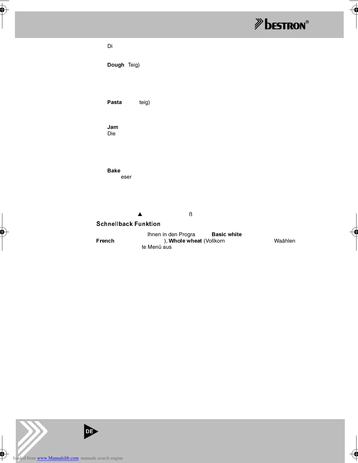 heraus. Es ist wichtig das Sie die Backform außerhalb des Gerätes befüllen, so