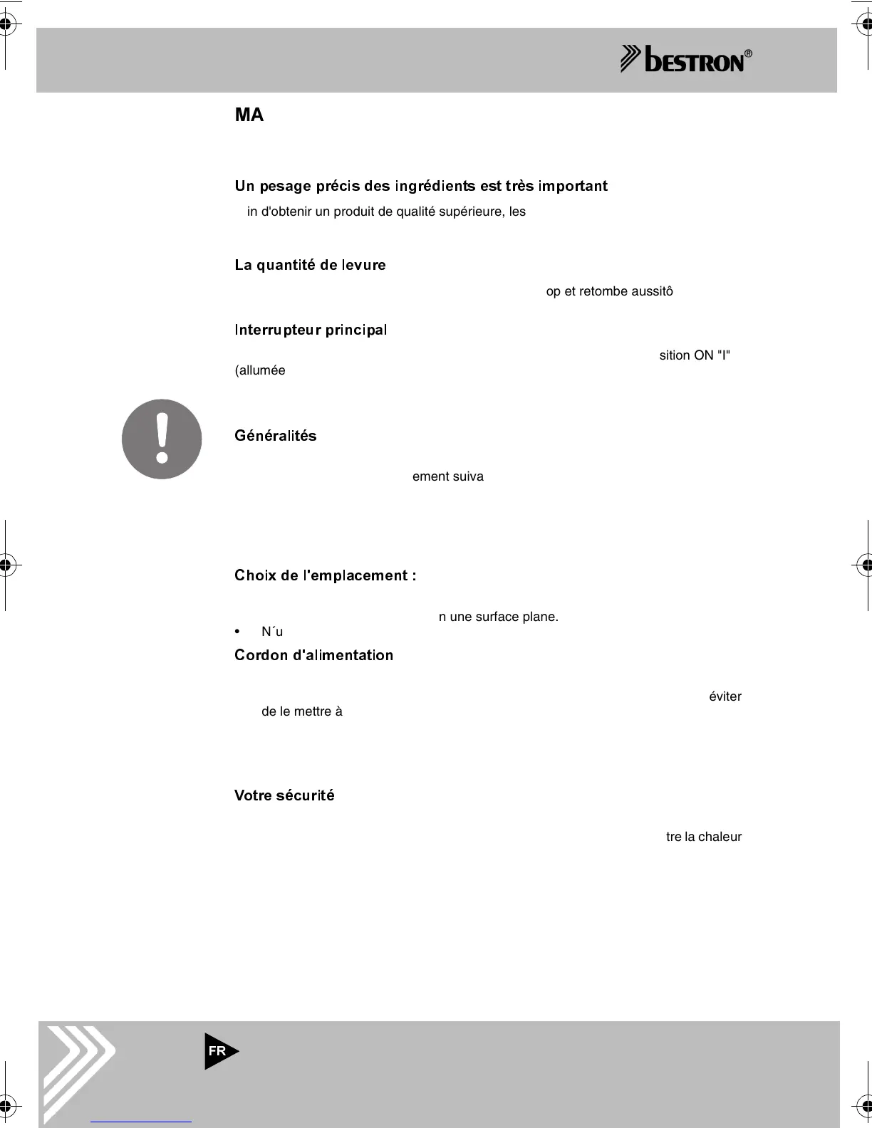 • Ne posez jamais la machine à pain sur un support ou dans un lieu dangereux.