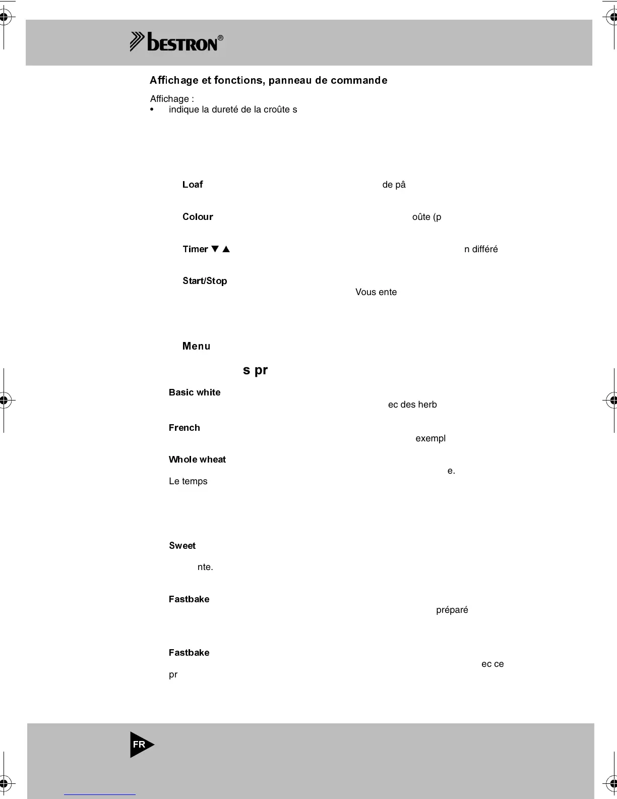 (Couleur) : pour le réglage de la couleur de la croûte (peu cuit, cuit, très