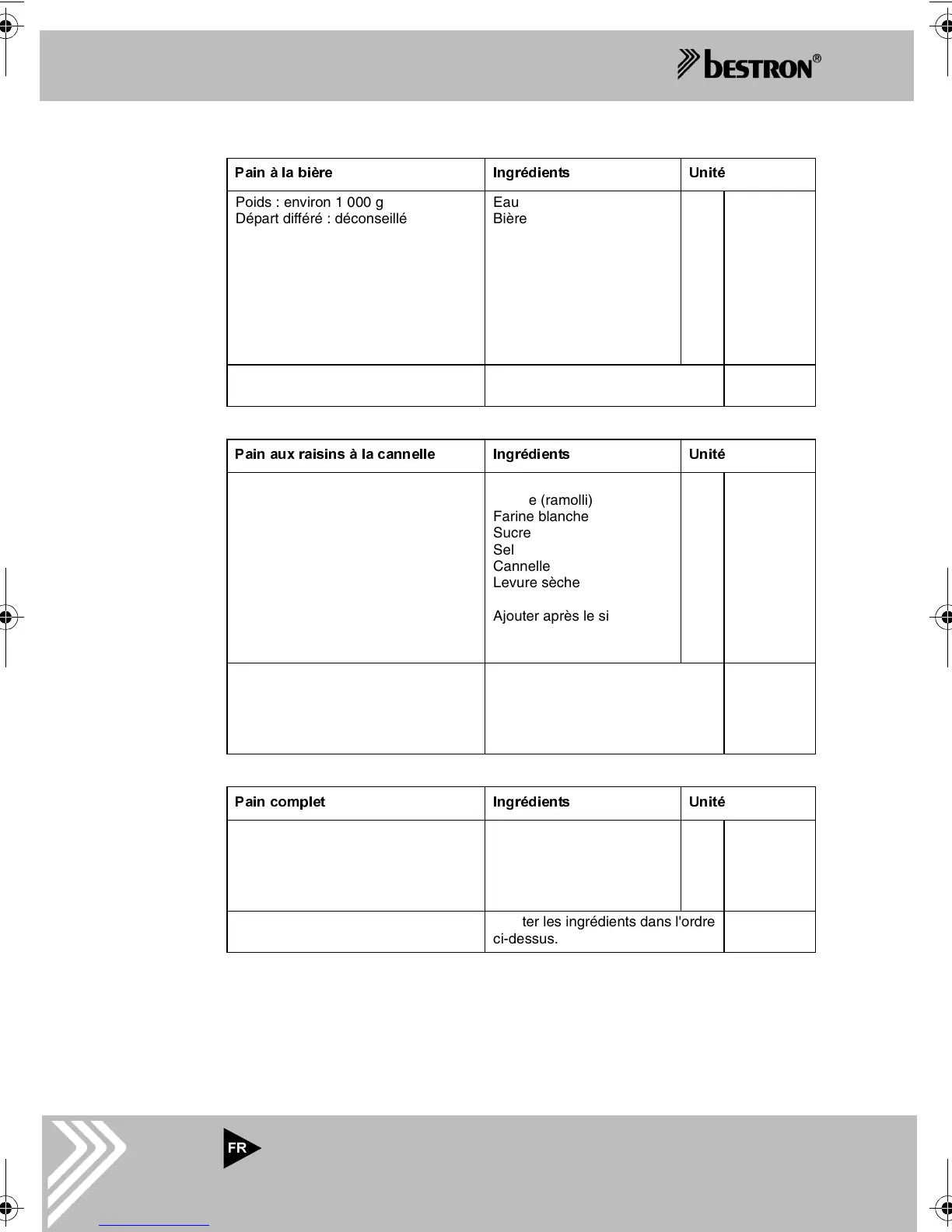 Programme : 1 Ajouter les ingrédients dans l'ordre