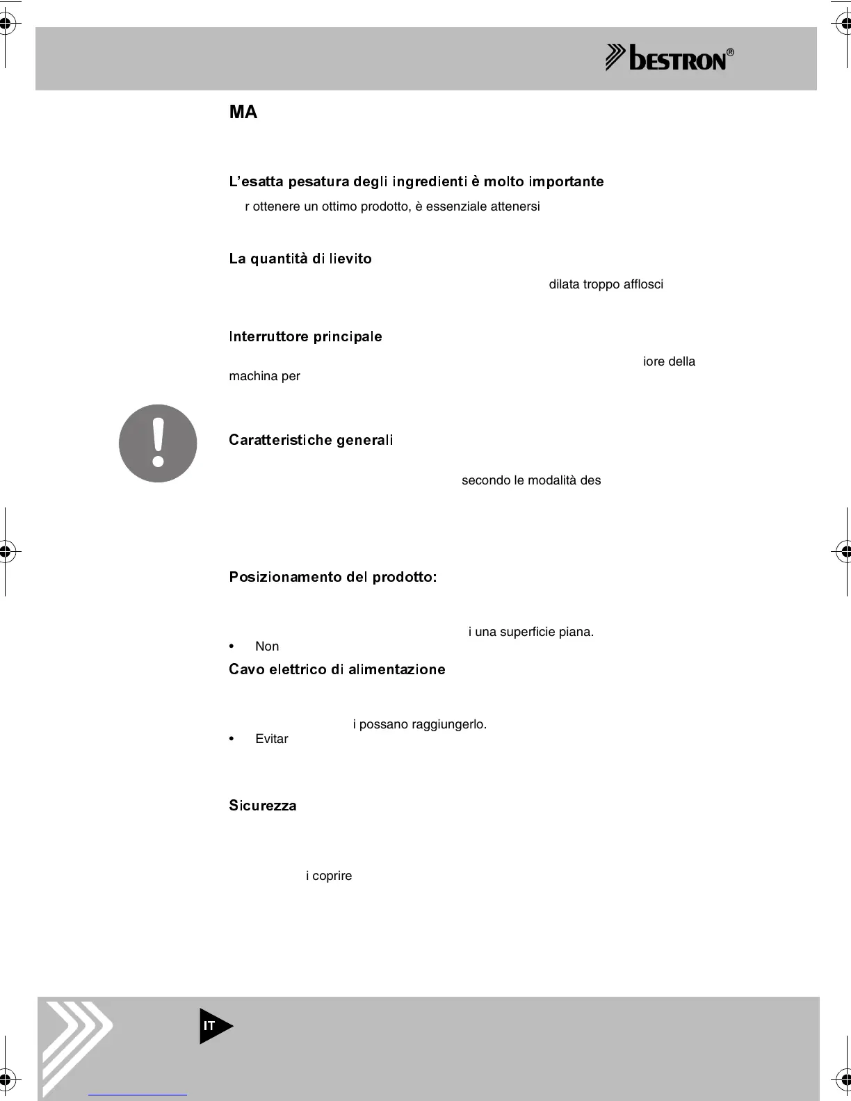 • Evitare di inserire agenti infiammabili all’interno della macchina per pane.