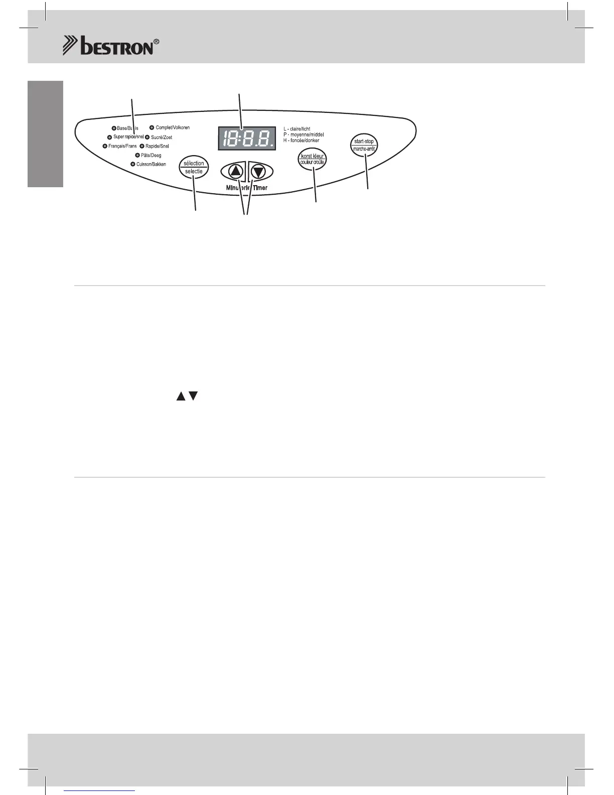 Toets “minuterie/timer” (17) (vertraagd bakken): om een vertraagd begin van het bakken in te stellen