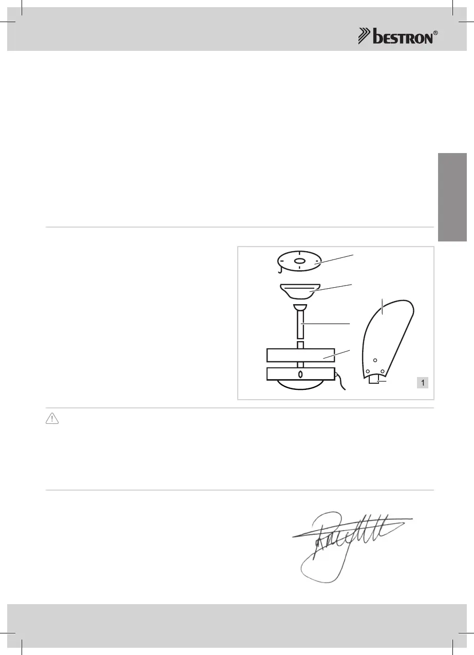 • Seien Sie sicher, dass der Lüfter hängt an einem Platz, wo der Abstand zwischen den Lüfterflügel