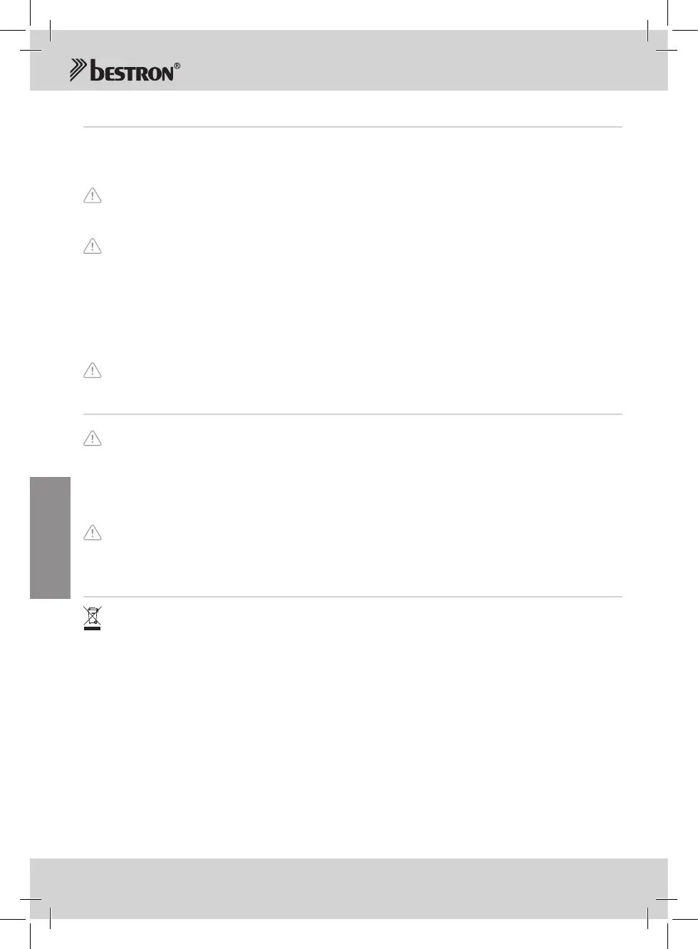 • When this product reaches the end of its useful life do not dispose of it by putting it in a dustbin;