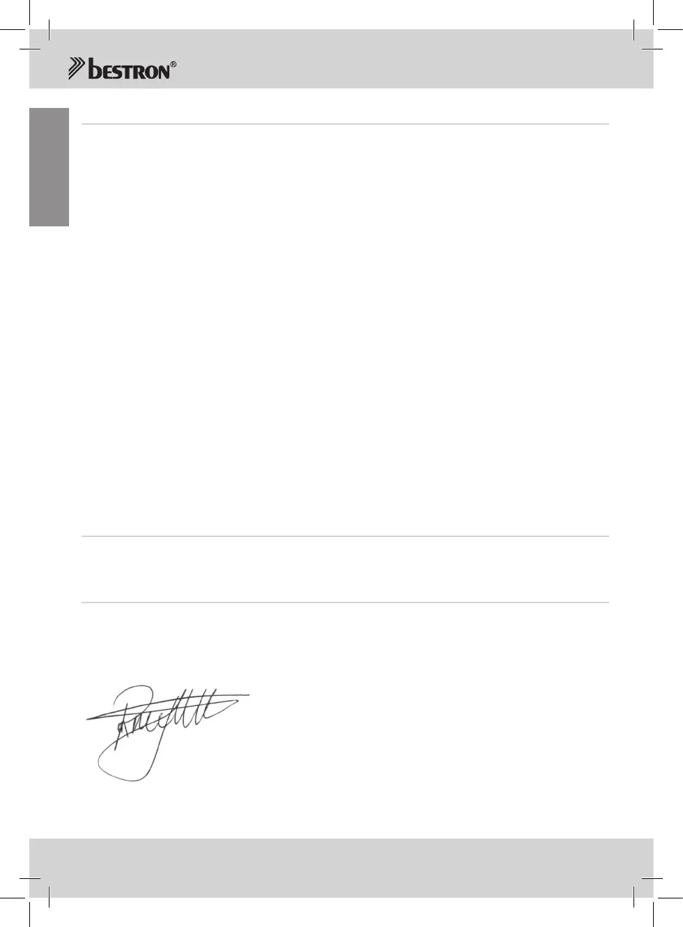 10. Um Garantieleistungen in Anspruch zu nehmen, wenden Sie sicht direkt an Ihren Händler. Bestron
