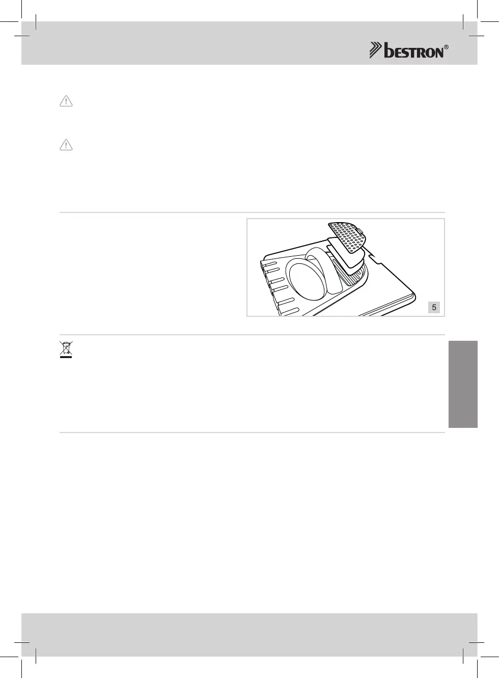 • Never immerse the heating element unit in water or another liquid and never place it under flowing