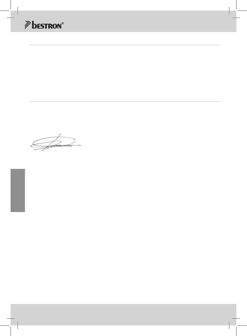 If a fault should occur please contact the BESTRON service department:
