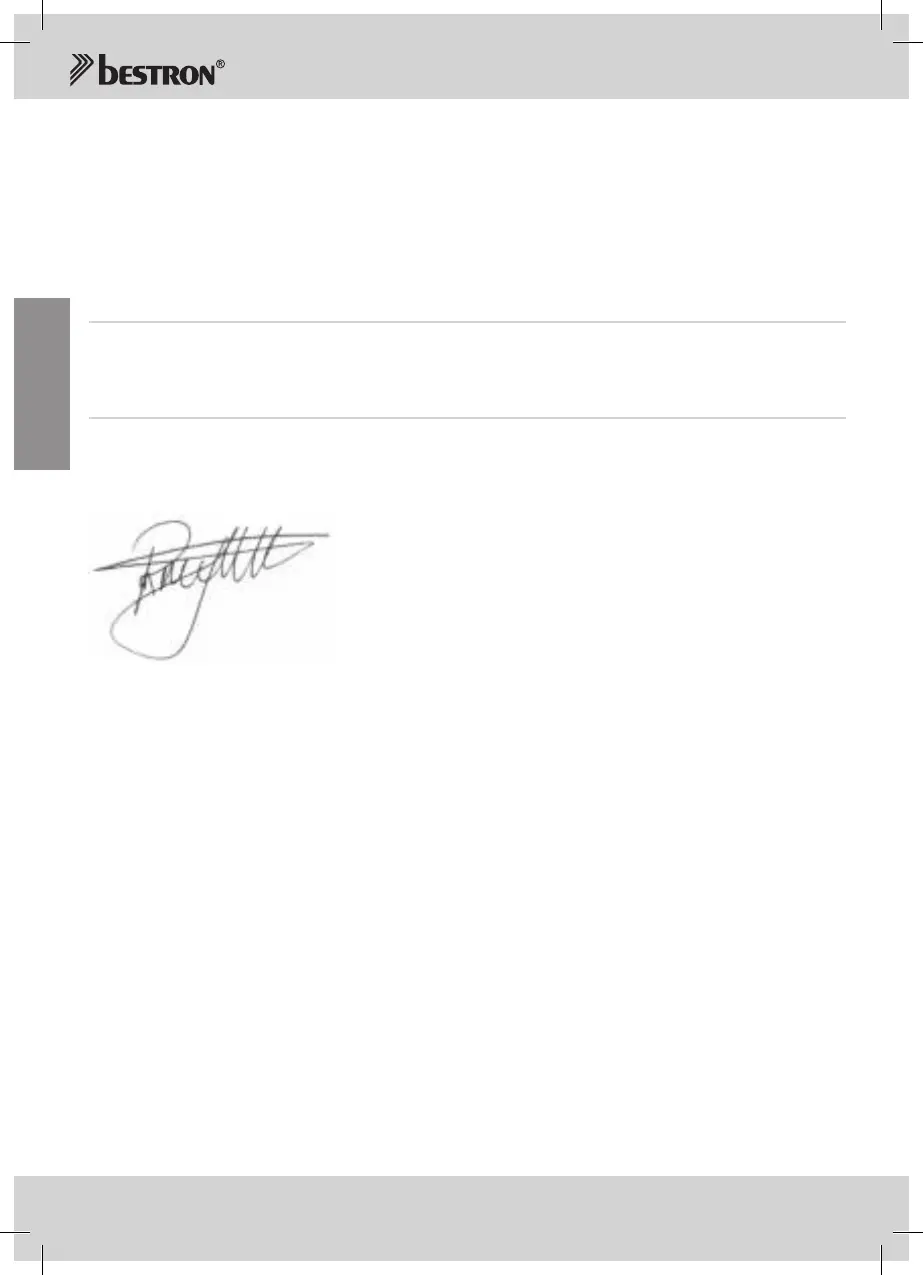 10. Um Garantieleistungen in Anspruch zu nehmen, wenden Sie sicht direkt an Ihren Händler. Bestron bietet