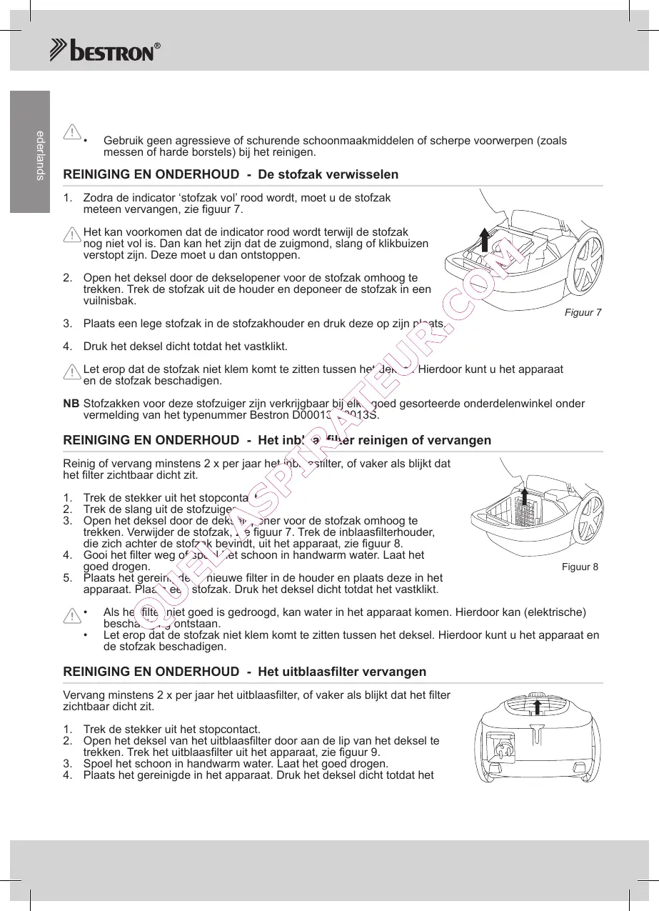 REINIGING EN ONDERHOUD - De stofzak verwisselen