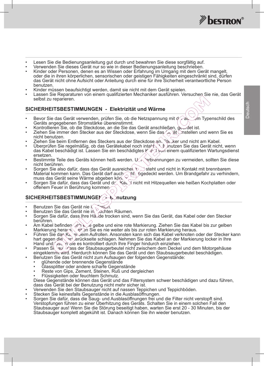 SICHERHEITSBESTIMMUNGEN - Elektrizität und Wärme
